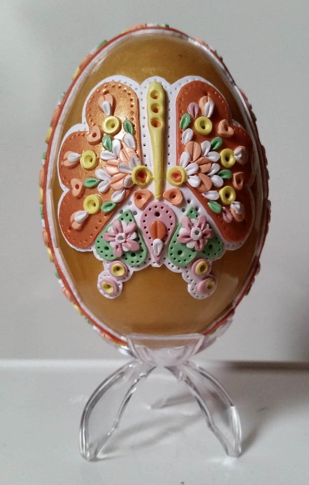 Aïna, Suisse Référence : "Oeuf N° 703 Oeuf d'oie décoré avec de l'argile polymère Prix : 35 €