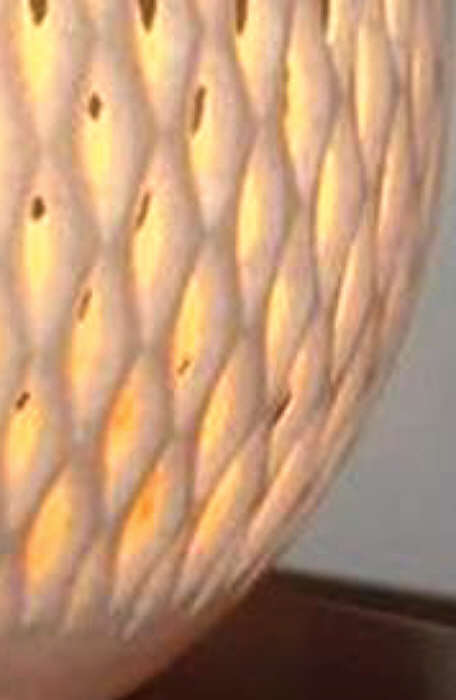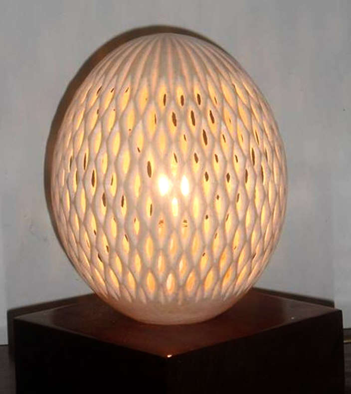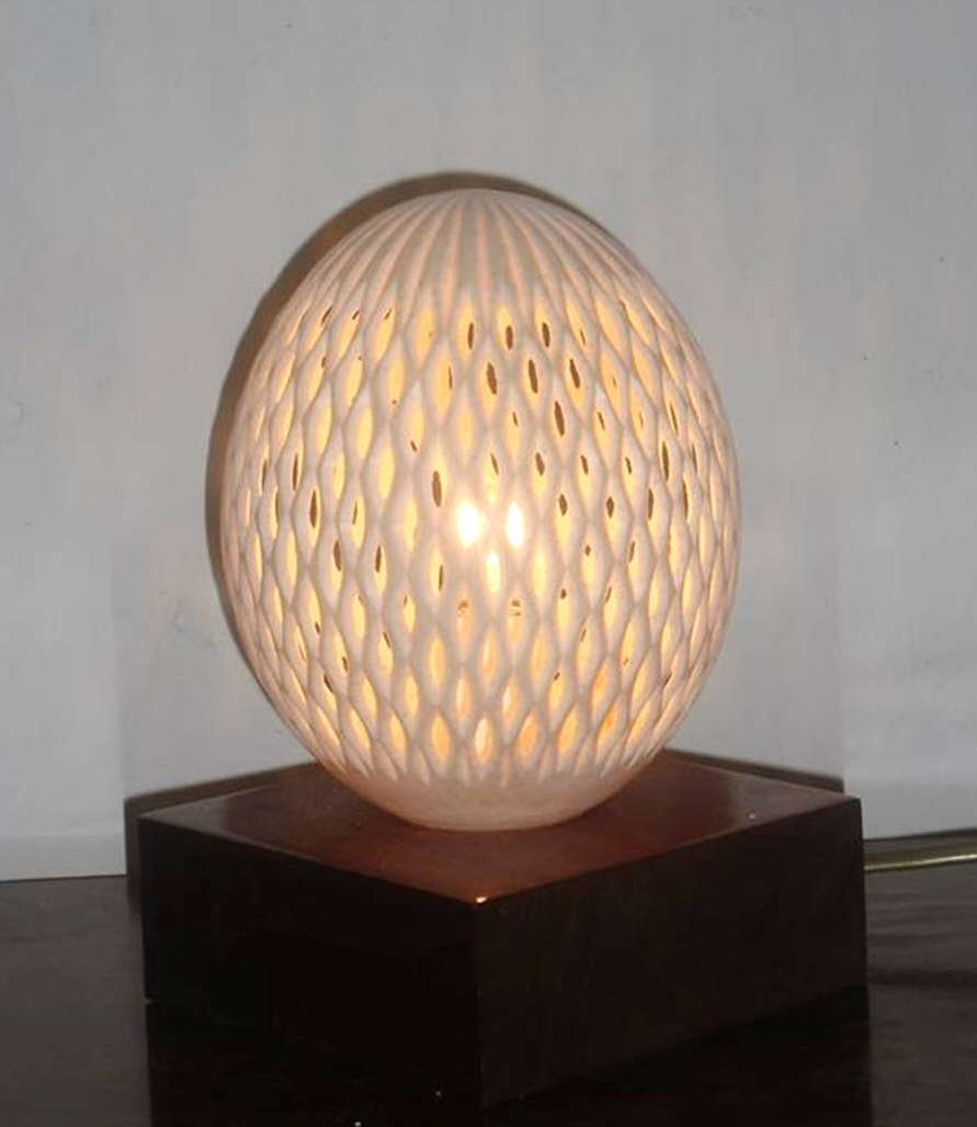 Oeuf d'autruche sculpté et équipé d''une lumière.